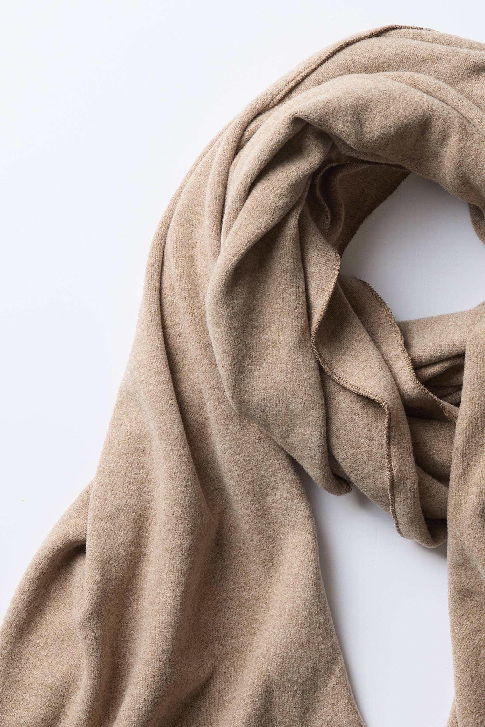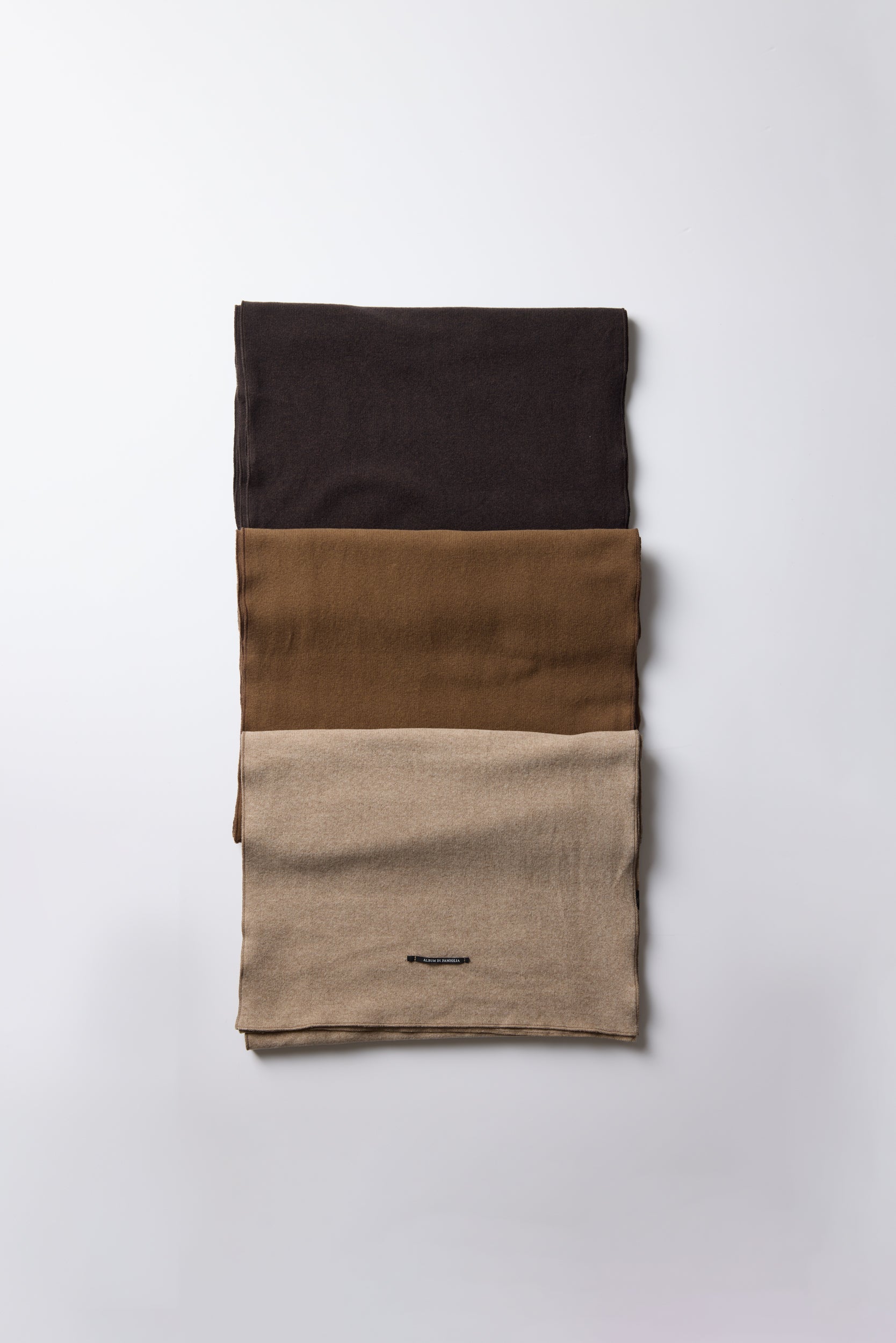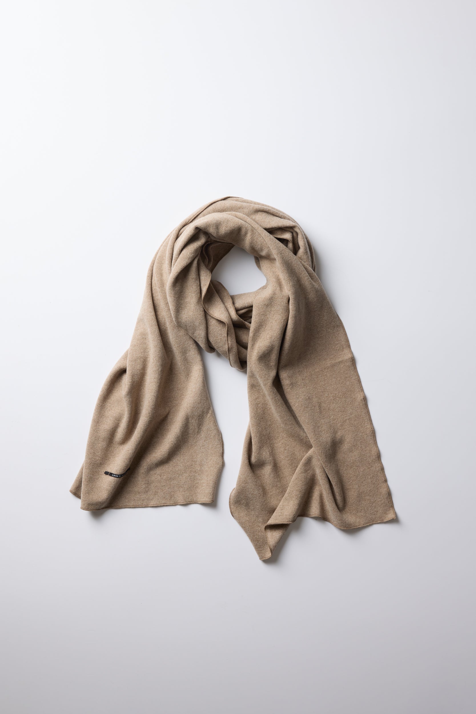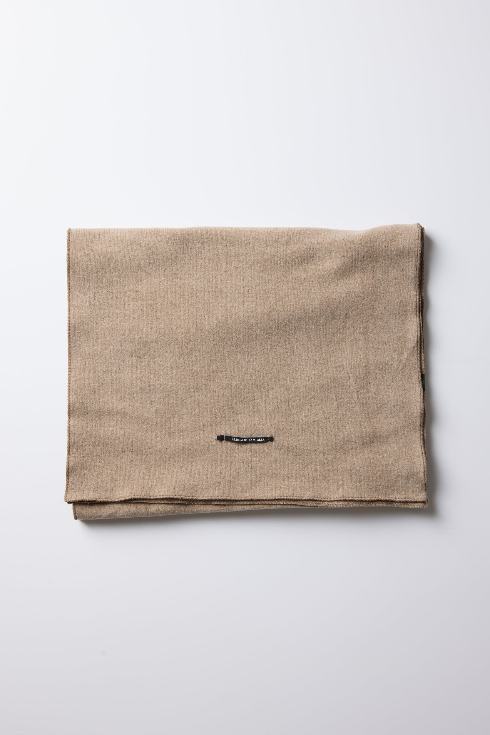 Sciarpone JP by Italian brand Album Di Famiglia. Seamless, soft jersey scarf with a frilly baby lock finish. We love mixing and matching it with other JP items.