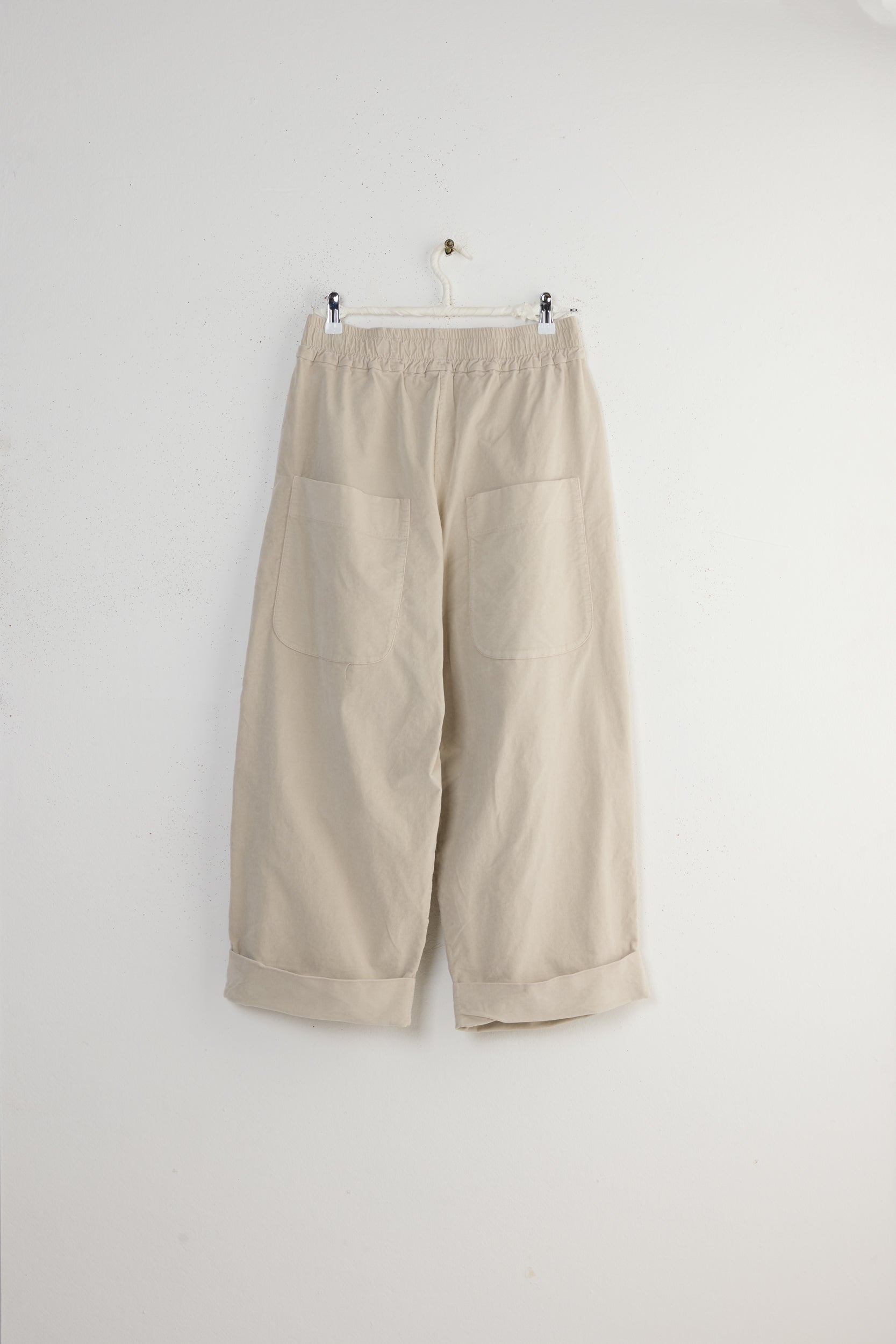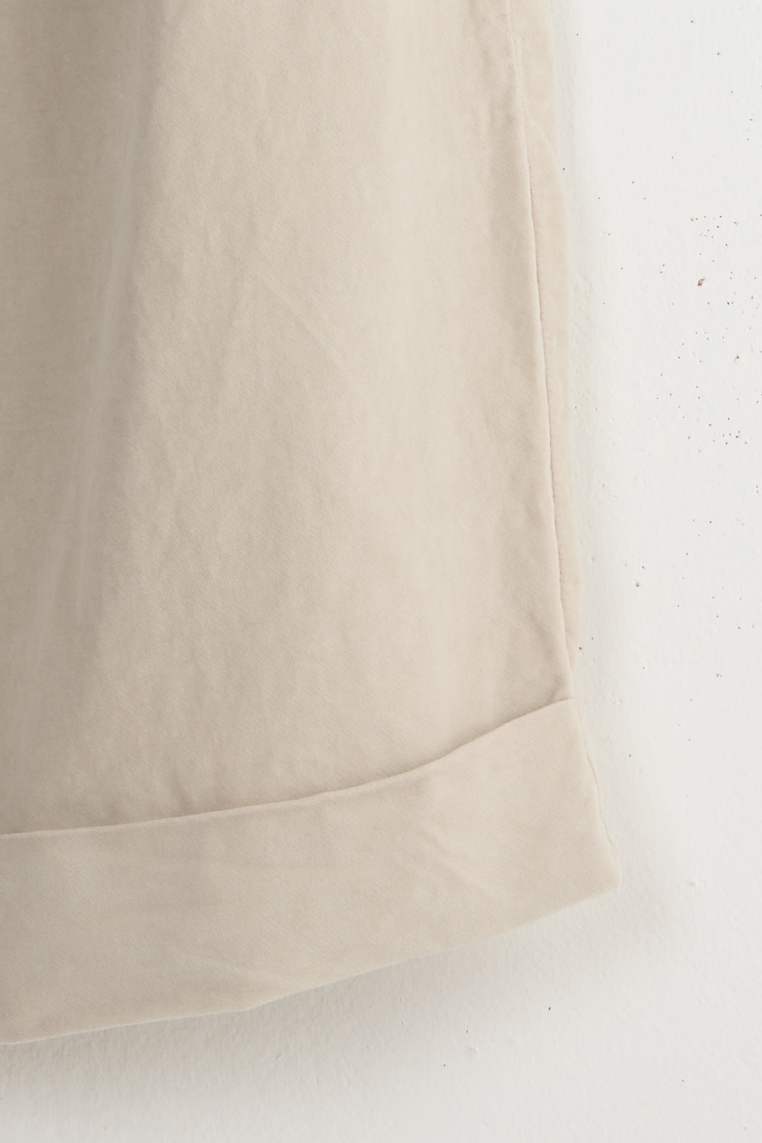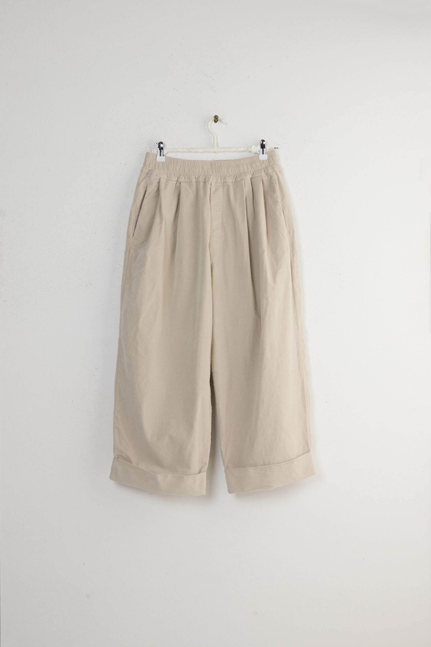 Album Di Famiglia Velvet Bragoni Trousers. Unisex, wide pleated trousers with cropped leg and elastic waistband with hidden drawstring. side pockets and lower back patch pockets. This cotton velvet fabric is super soft with a little bit of stretch to it.