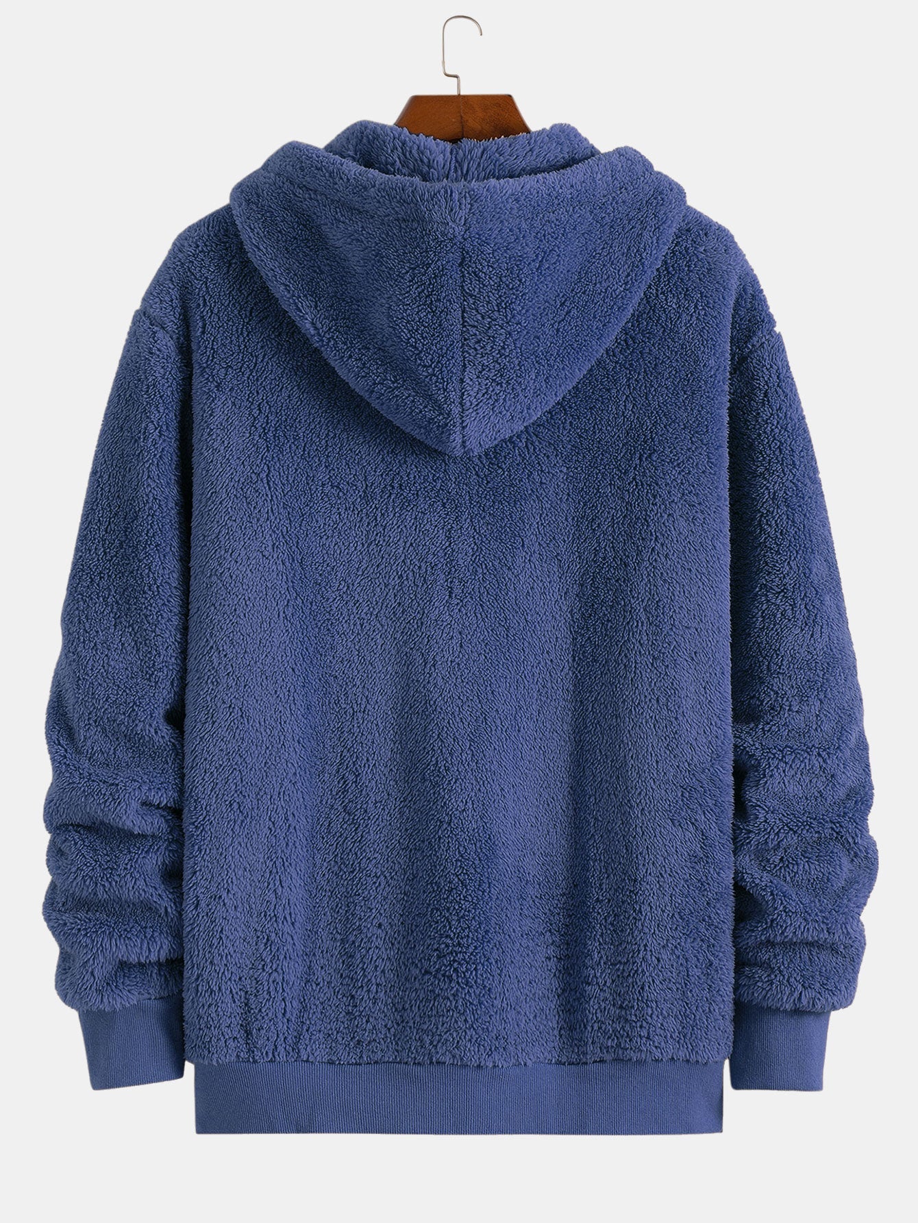 Crafted from ultra-soft teddy fleece, it combines cozy comfort with playful style, featuring a cute embroidered black cat detail on the chest. The full front zipper, adjustable drawstring hood, and kangaroo pockets make it both practical and stylish, perfect for layering in cooler weather.