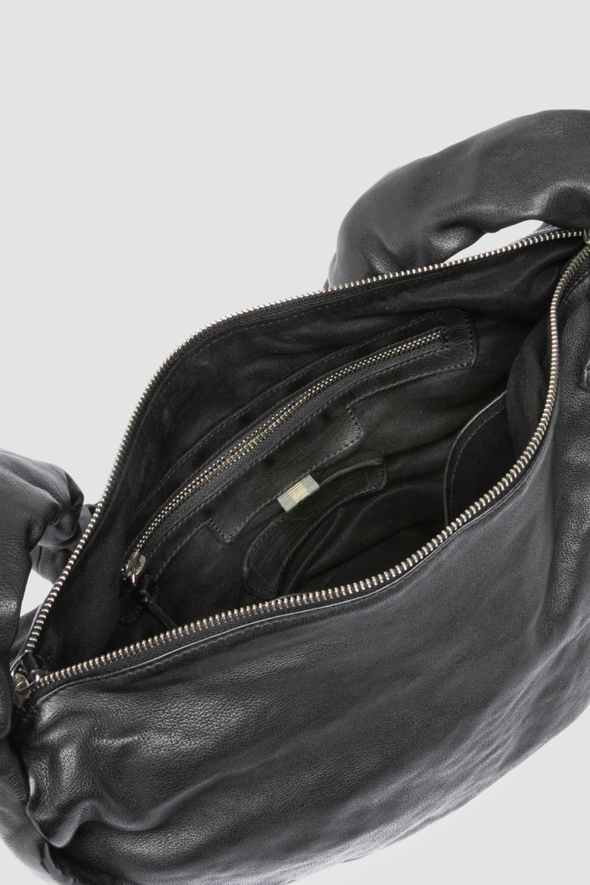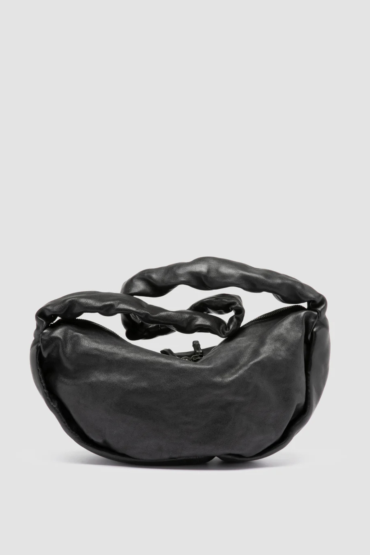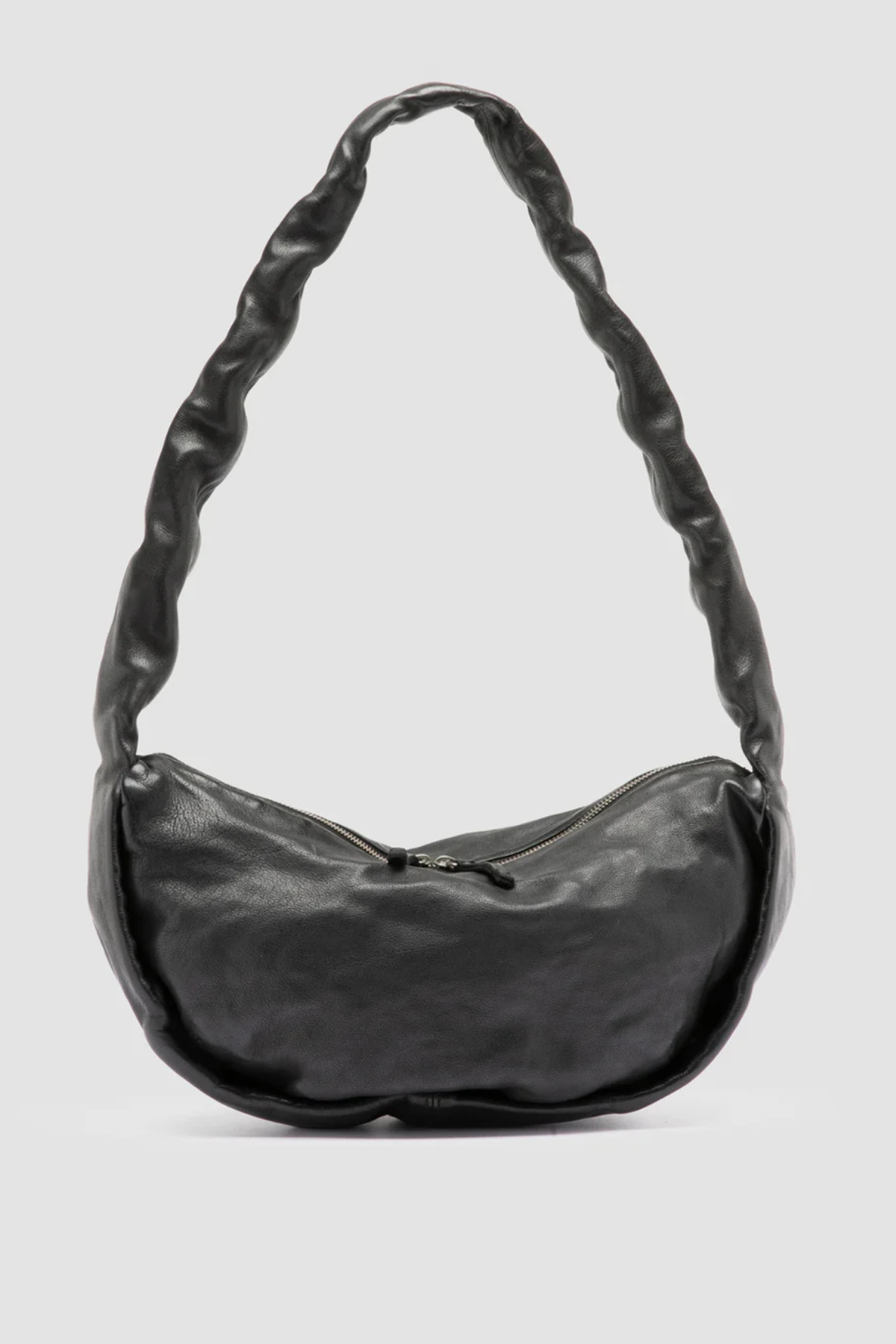 The Bolina 046 by Officine creative. A soft crossbody leather bag in a relaxed silhouette with a draped shoulder strap. Minimalistic and functional, offering a spacious interior with a double-zip closure.
