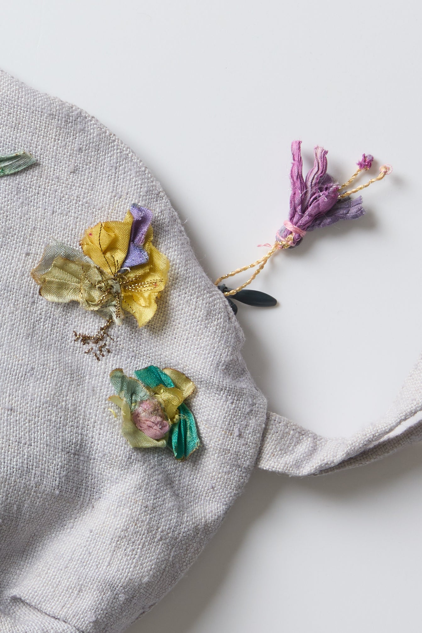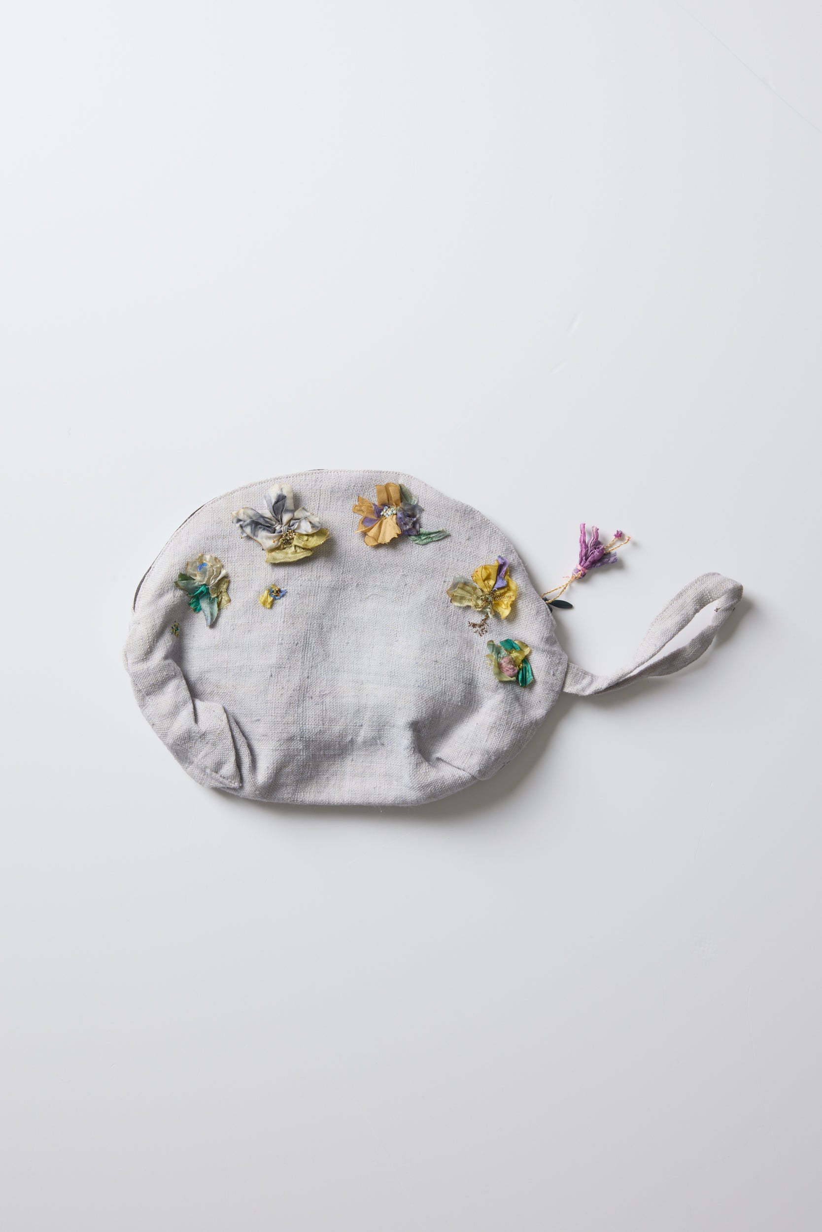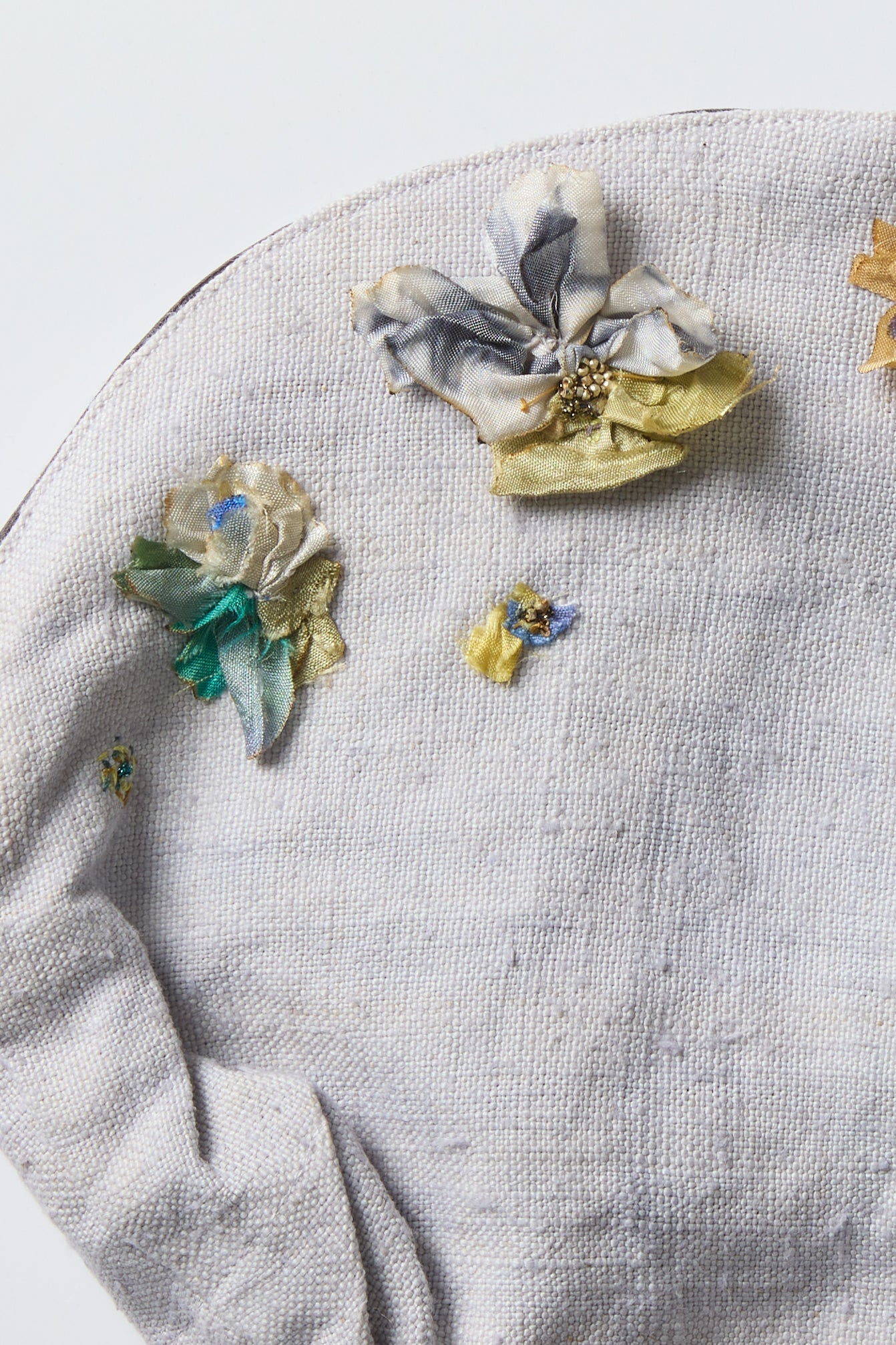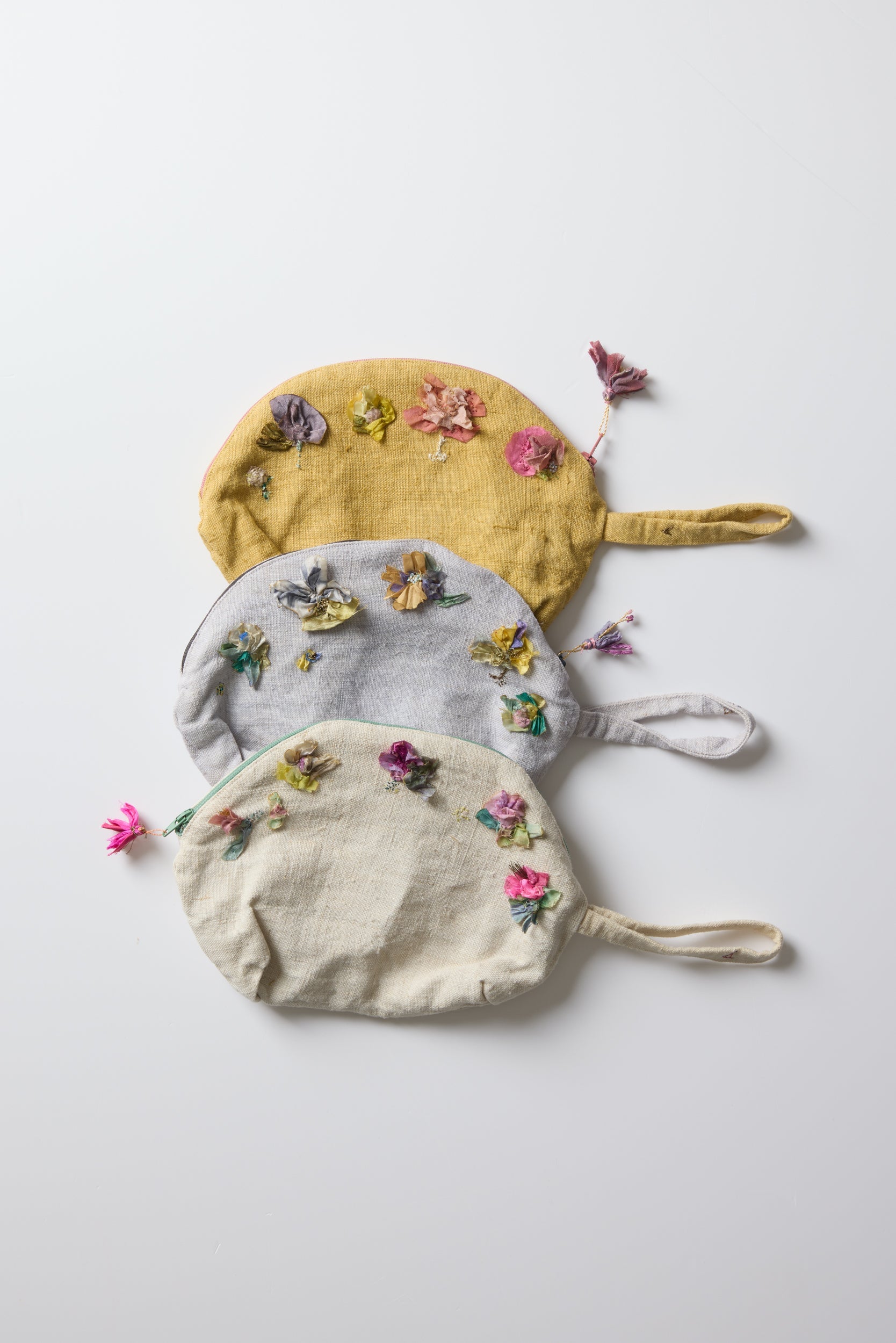 Big Pouch by antomoon. a beautiful hand made pouch made from vintage linen, decorated with embroidered flowers and details made from vintage silk, thread and venetian glass beads. lined with velvet.