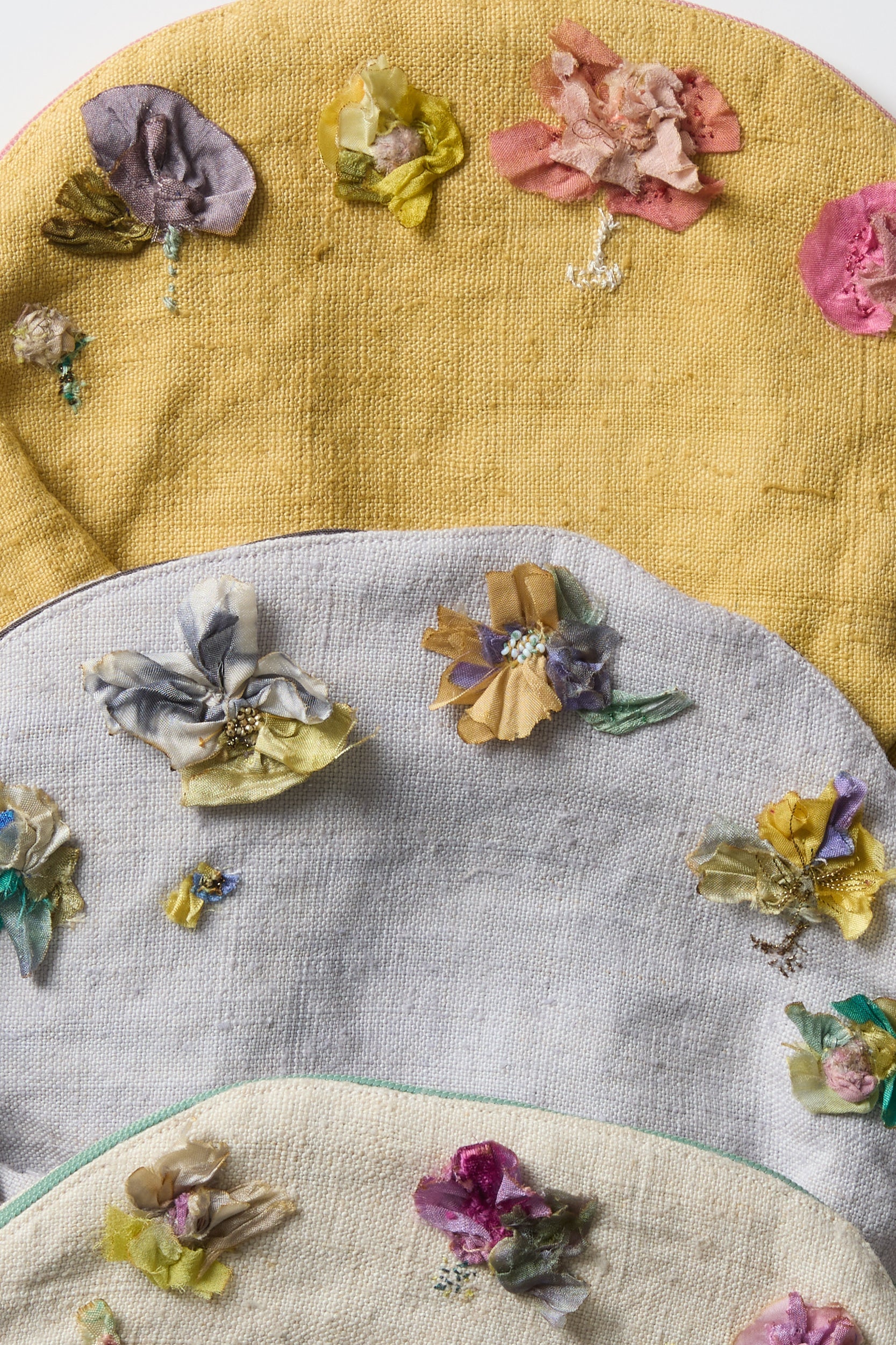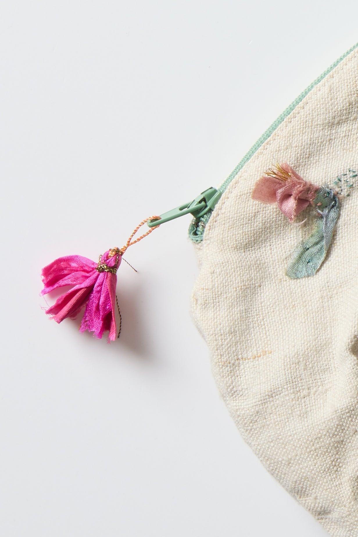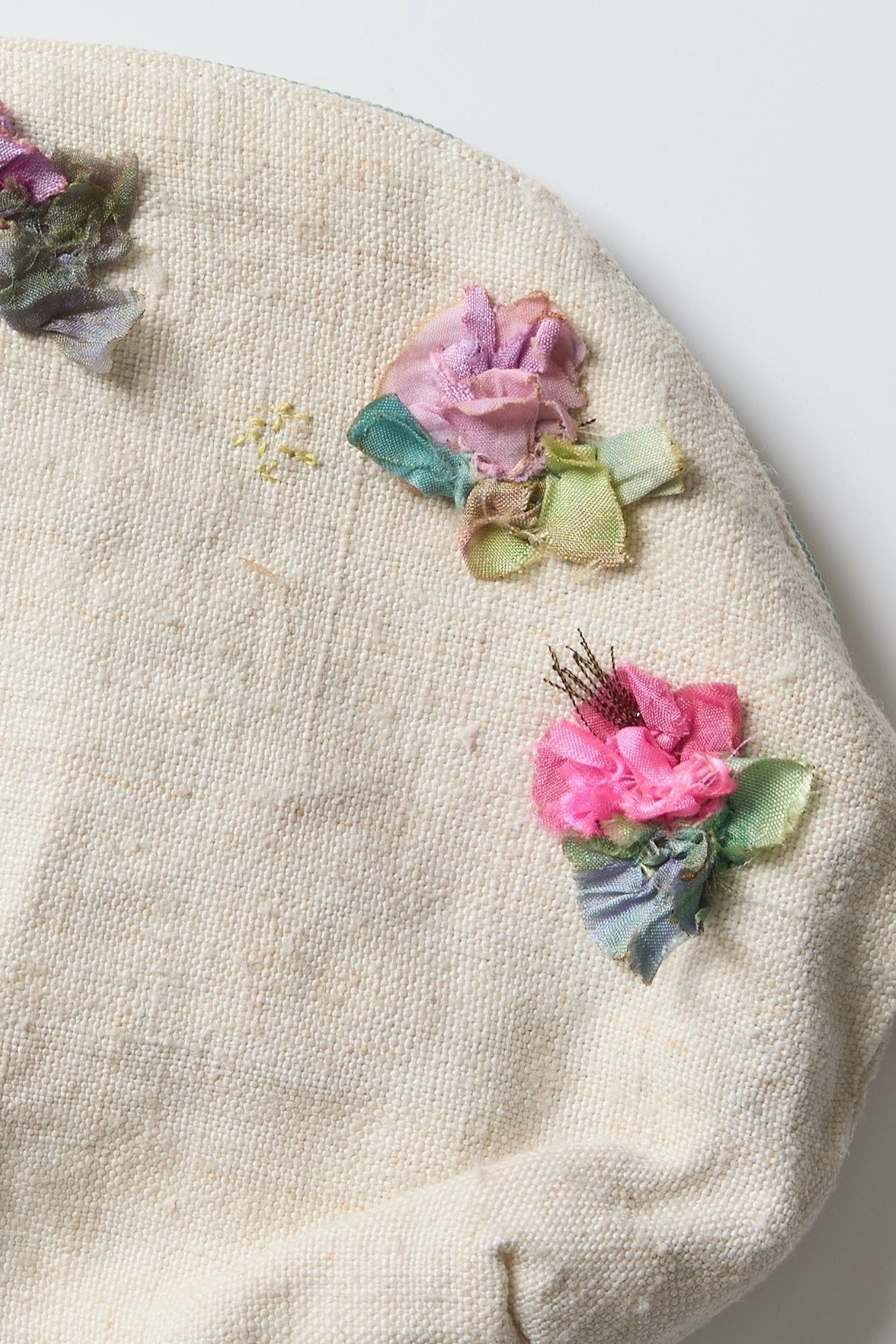Big Pouch by antomoon. a beautiful hand made pouch made from vintage linen, decorated with embroidered flowers and details made from vintage silk, thread and venetian glass beads. lined with velvet.