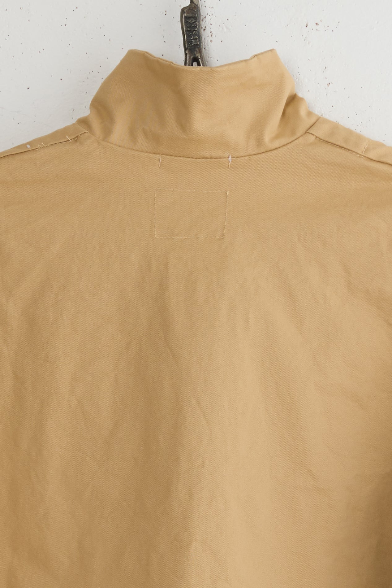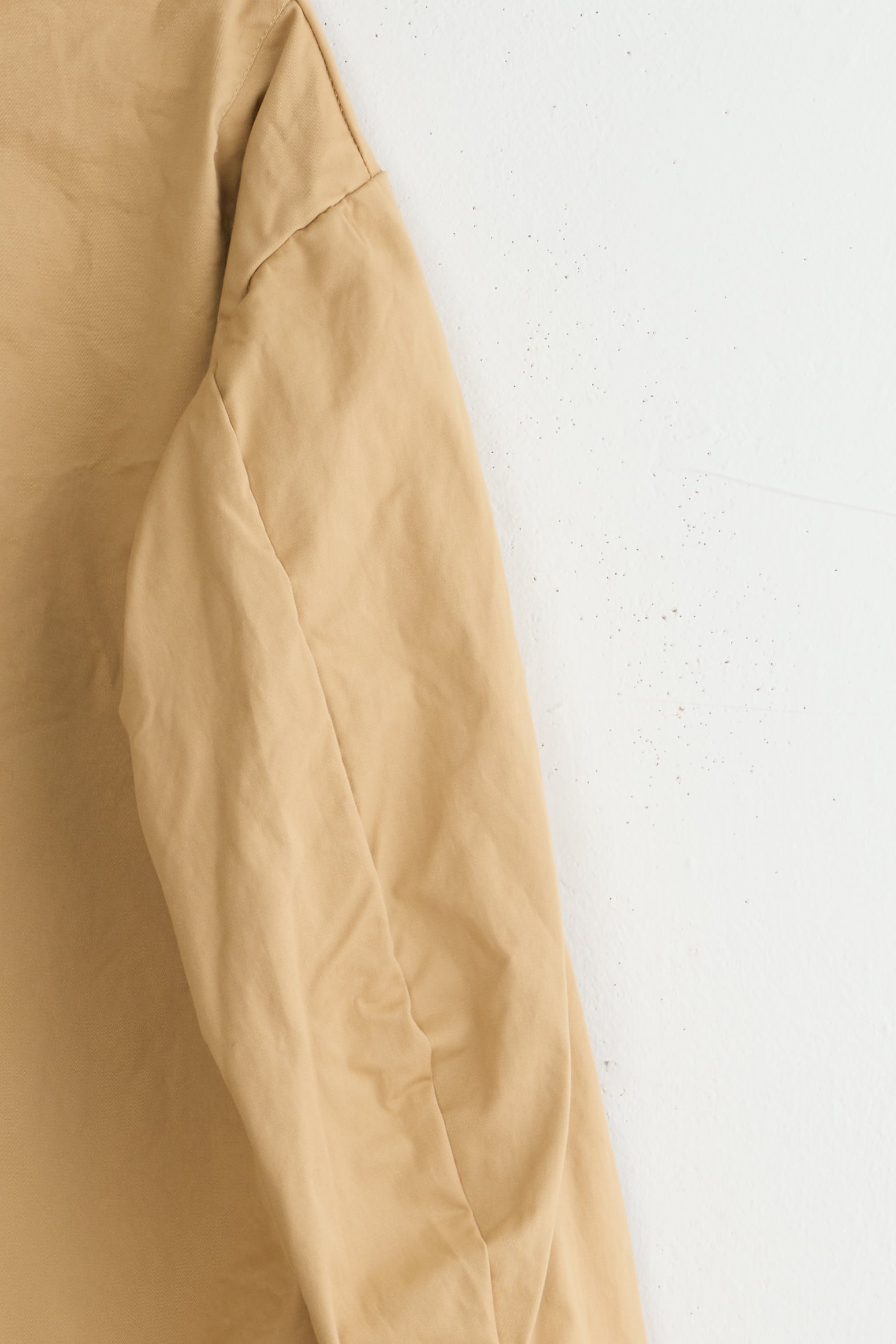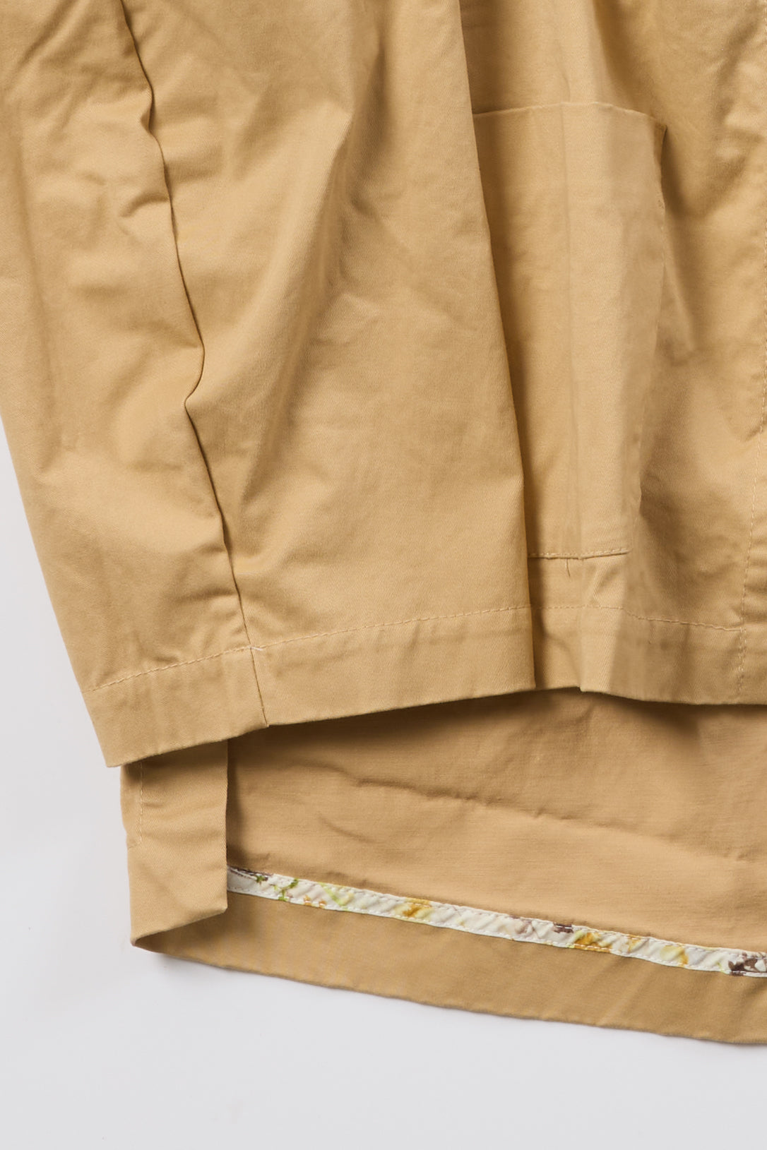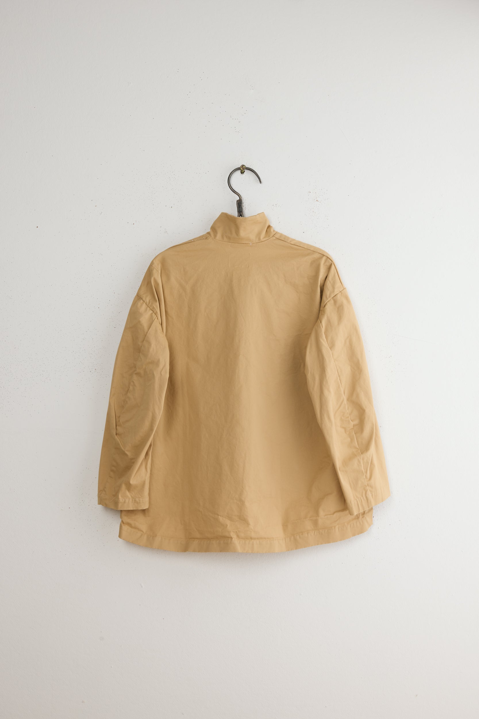 Dani jacket by Maya Zukerman. A short, light-weight cotton jacket. Relaxed fit with dropped shoulders, a shorter front side and an upright collar. Features Corozo button closure, floral inside ribbons and hand embroidered slanted button holes. The first button is made as a flower by stacking layers of the material. This jacket also has Side slits and two front patch pockets. suited especially for the hot summer days and chilly spring nights of Tel-Aviv.