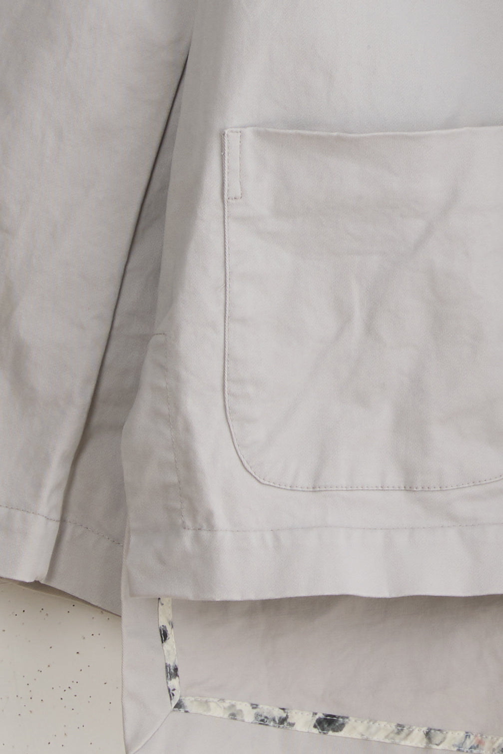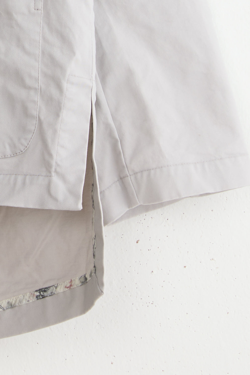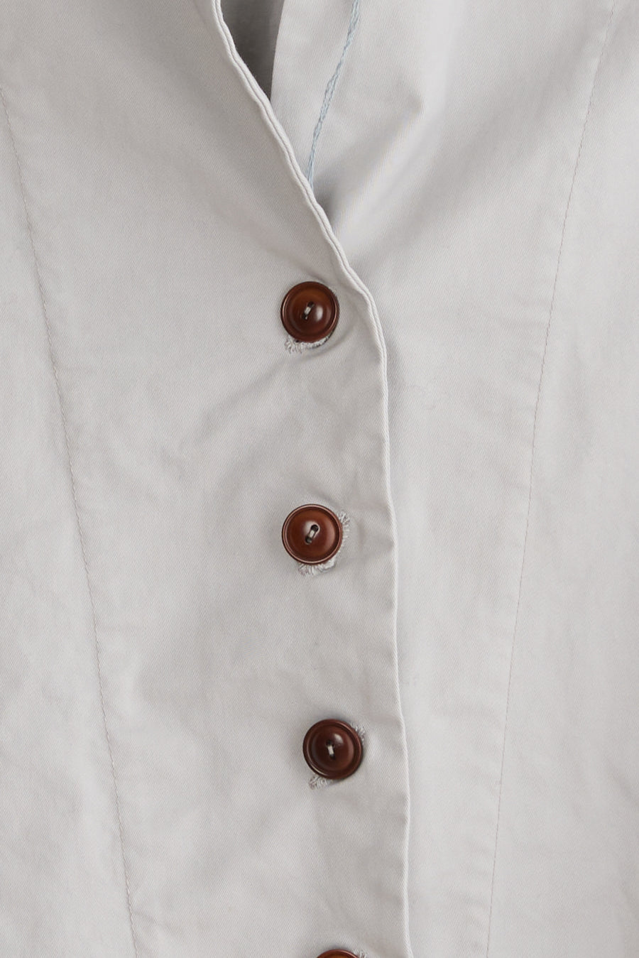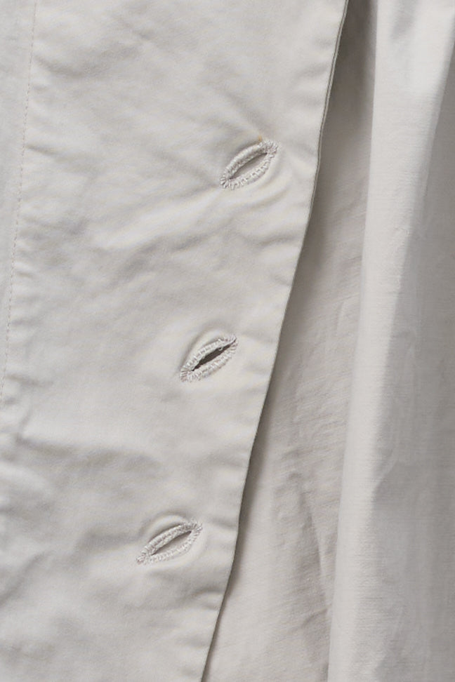 Dani jacket by Maya Zukerman. A short, light-weight cotton jacket. Relaxed fit with dropped shoulders, a shorter front side and an upright collar. Features Corozo button closure, floral inside ribbons and hand embroidered slanted button holes. The first button is made as a flower by stacking layers of the material. This jacket also has Side slits and two front patch pockets. suited especially for the hot summer days and chilly spring nights of Tel-Aviv.