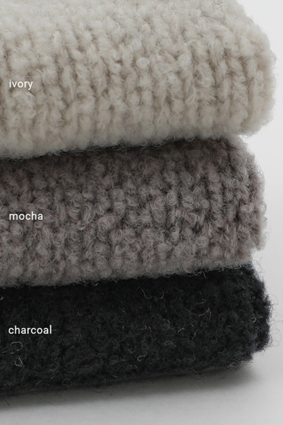 Renew wool turtleneck by Japanese brand Evam Eva. Relaxed, chunky pullover sweater made from the leftover materials from the classic pressed wool series. This process also creates a light and unique texture to the wool. Puffy, ribbed neck, cuffs and hems. size - Front length 58 | Back length 62 | Shoulder width 62 | Bust 62