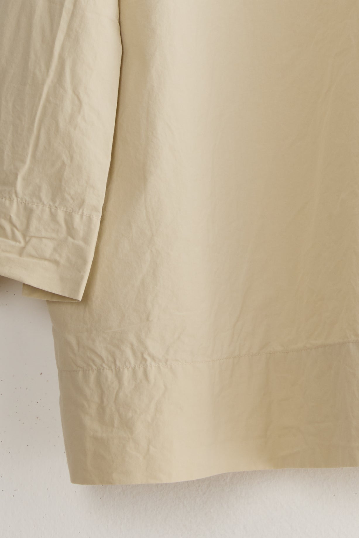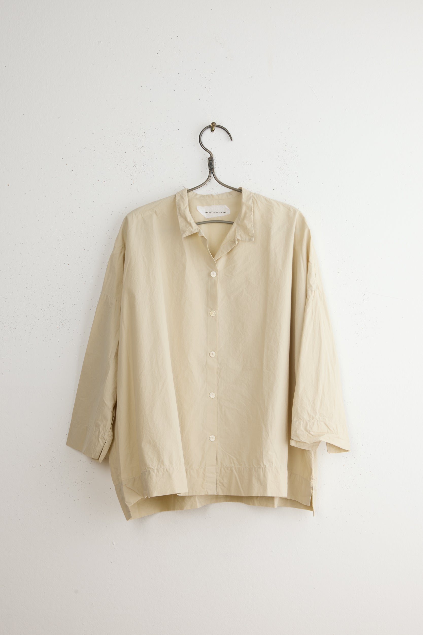 The Melody shirt by Maya Zukerman is a light and breezy collared shirt made of 100% Japanese paper cotton. A "BOXY" shaped silhouette, hand dyed Dorset button closure, slim collar and dropped shoulders. Finished with a wide hem, side slits and round cuff slits. Relaxed fit, slightly shorter on the front.