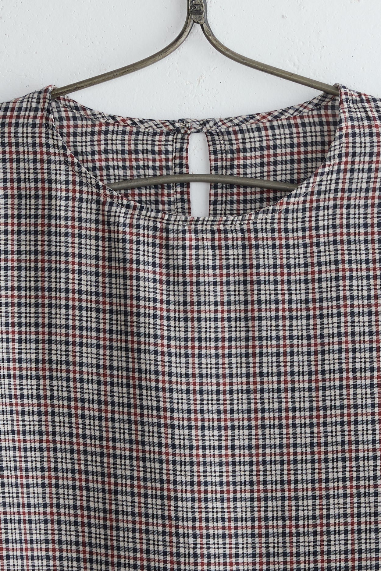Pollynikki tartan shirt by Maya Zukerman is a light-weight long sleeved shirt made for year-round wear. made soft and supple cotton, a wide oversized fit with dropped shoulder, crew neck and gathered sleeves. A wide hem fitting shorter on the front. Details include side slits, cuff slits and a back slit with a hand dyed Dorset button closure.