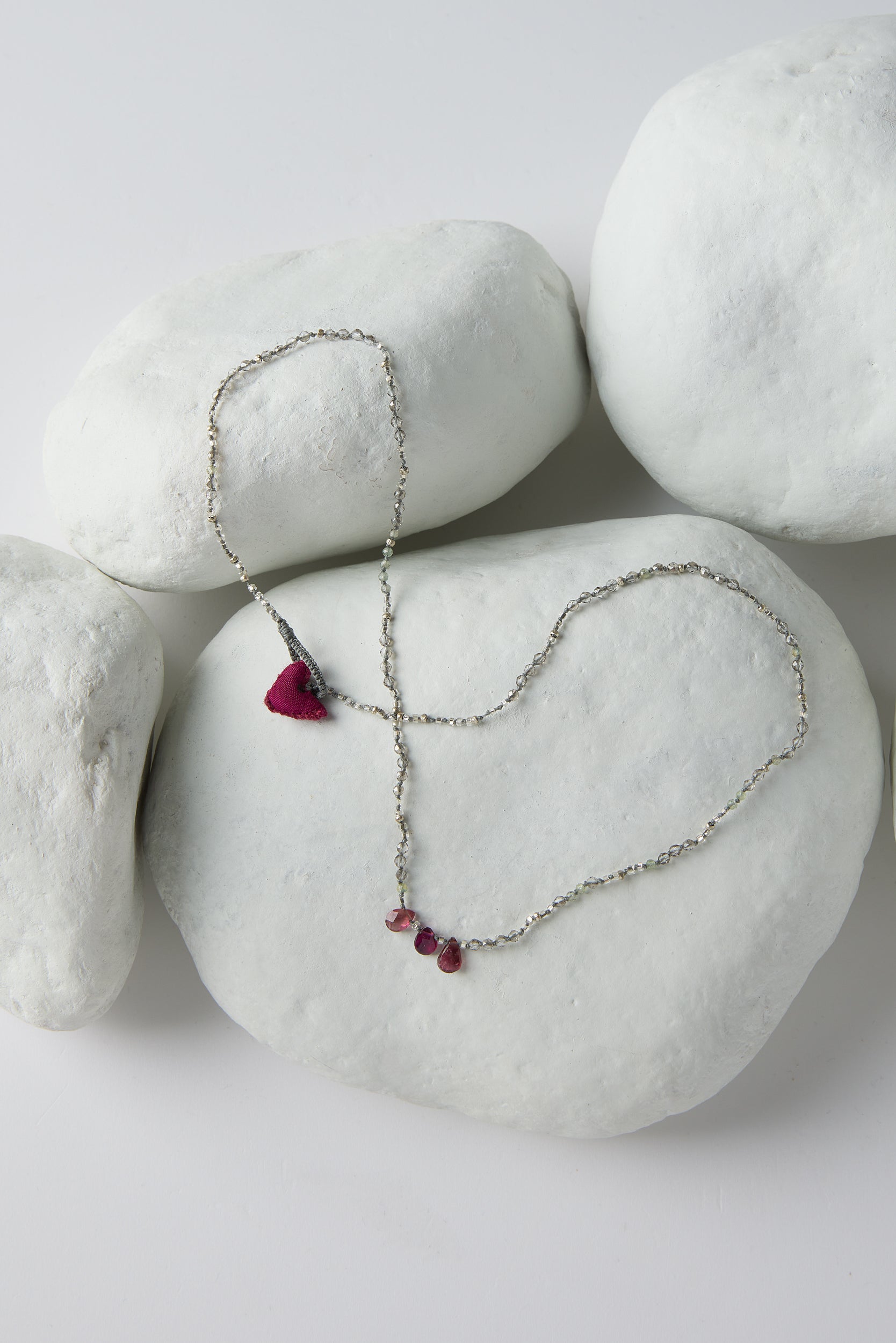 Venetian glass necklace by Antomoon. One of a kind, delicate necklace hand crafted from Venetian micro beads with a hand embroidered little charm made from vintage fabrics and threads.