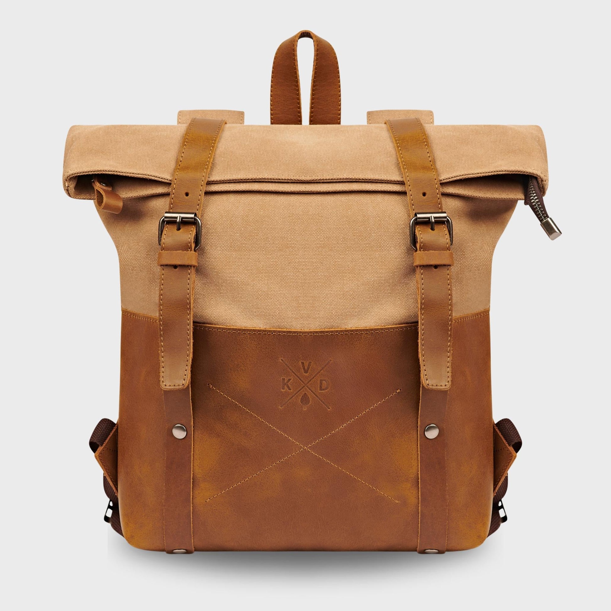 The Witham handmade heavy-duty canvas and reclaimed leather fold top backpack
